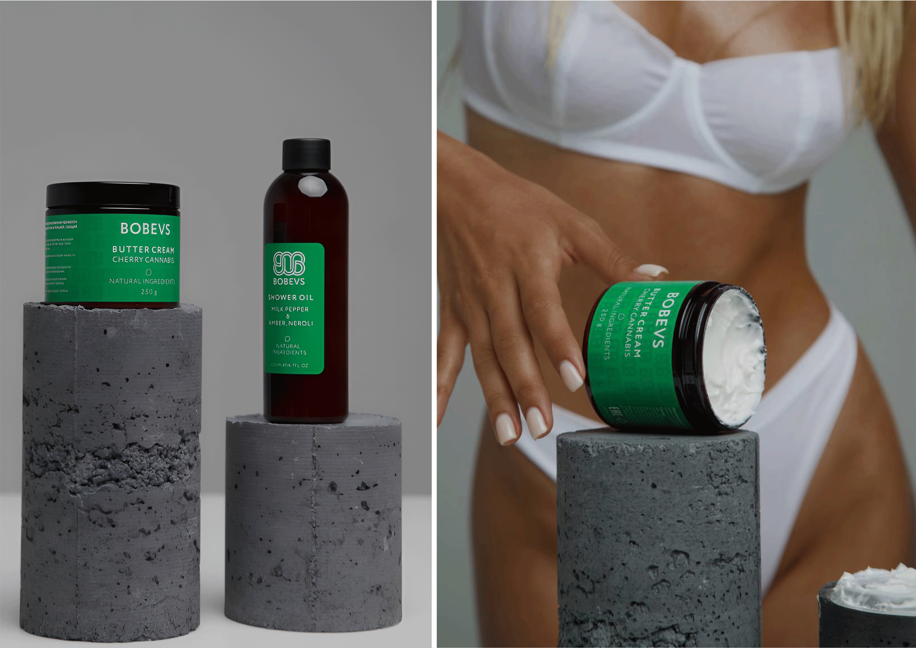 В качестве основного цвета мы выбрали травяной зеленый – он смотрится благородно на фоне темно-коричневой тары и передает натуральность состава. Такое сочетание создаёт ощущение дороговизны и премиальности продуктов.