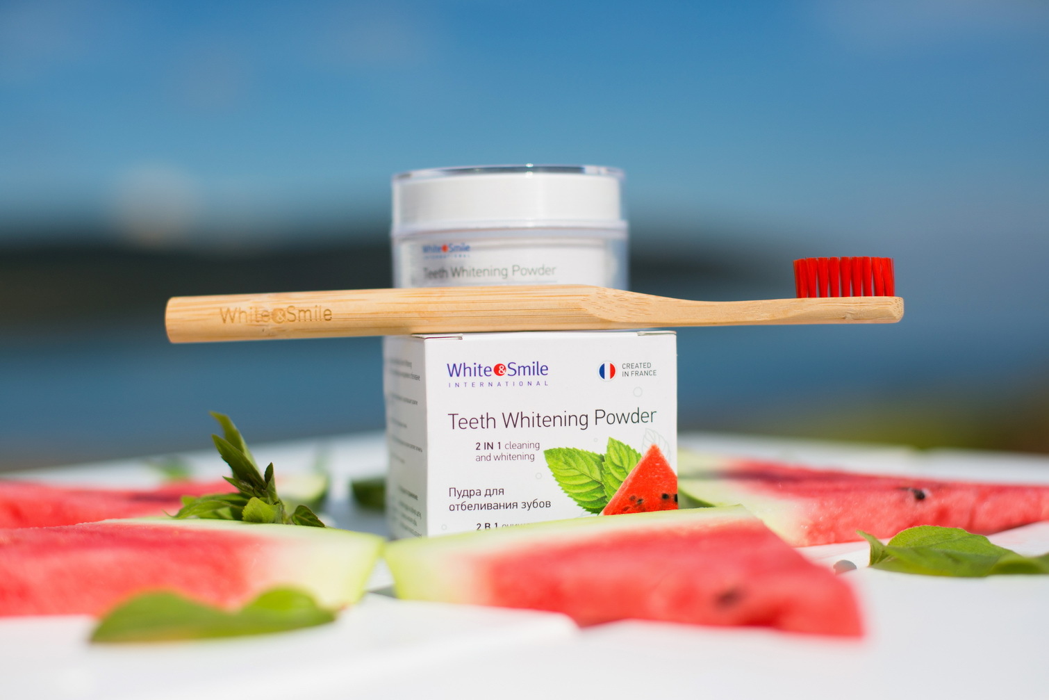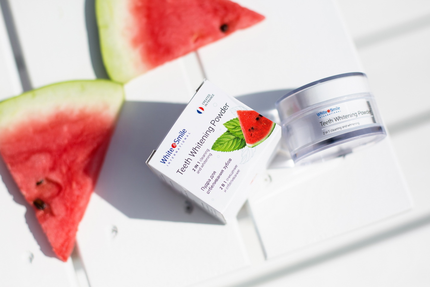 Разработать дизайн упаковки для зубного порошка White&Smile. Переработать существующий дизайн и создать упаковку для новой линейки порошков со вкусом фруктов.